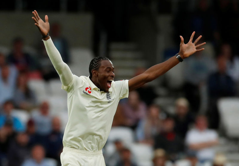 LEEDS, England (Reuters) - Jofra Archer's first five-wicket haul in test cricket put England in command on a weather-affected opening day of the third Ashes test at Headingley on Thursday as they bowled Australia out for 179.