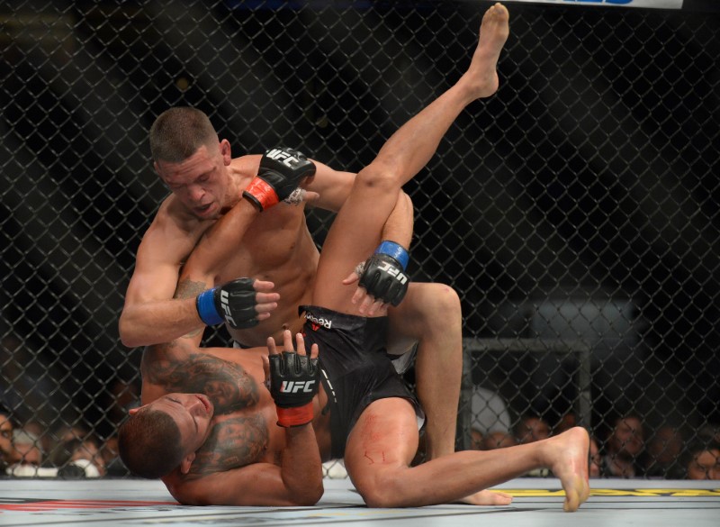 Fighting at welterweight, California native Diaz landed a late takedown to finish the first round strongly before pressuring Pettis against the fence in the second and landing some heavy strikes to the head and body.